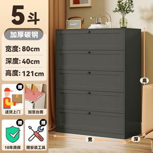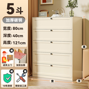 钢制五斗柜现代简约铁艺落地储物柜客厅多层抽屉柜奶油风收纳柜子
