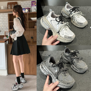 真皮厚底老爹鞋女2025春夏新款韩版透气百搭轻便防滑休闲运动鞋潮