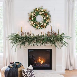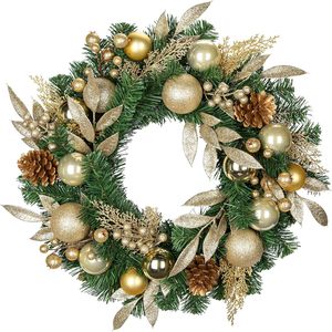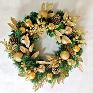 厂家直销跨境亚马逊光波球松果叶子PVC花环家庭节日派对场景布置