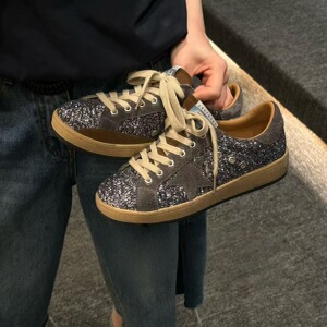 板鞋女款2025新款高级感复古做旧亮片星星鞋秋季学院风休闲德训鞋