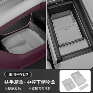 适用于YU7二代中控下储物盒+扶手箱储物盒【鸢尾紫灰】3件装