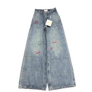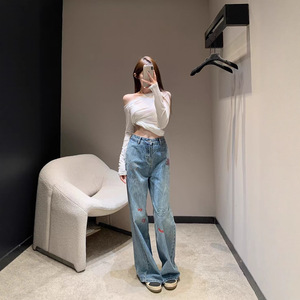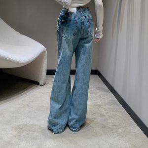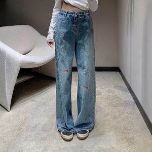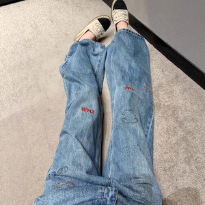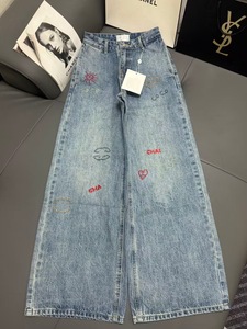 南油高品质小香25新款字母彩色刺绣休闲百搭高腰直筒阔腿牛仔裤女