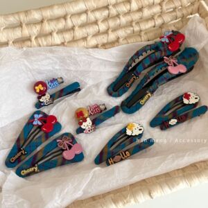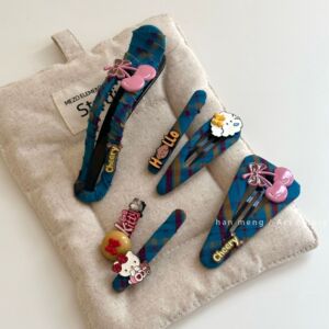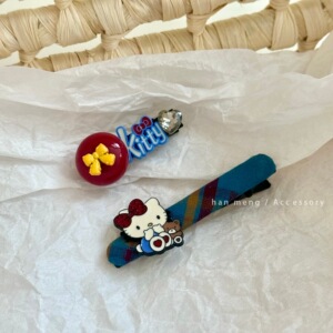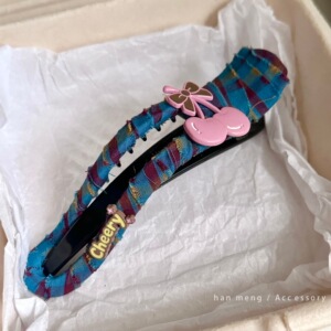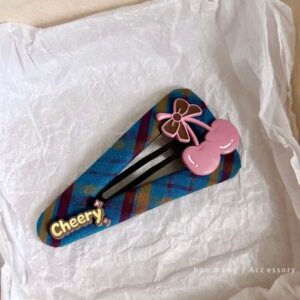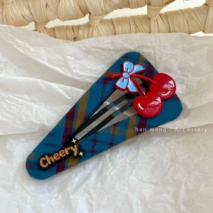 韩系红蓝黄色格纹布艺蝴蝶结发夹清新甜美刘海侧边夹发夹发饰头饰