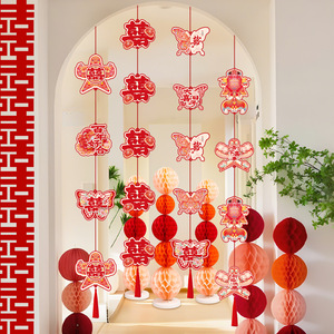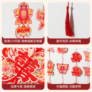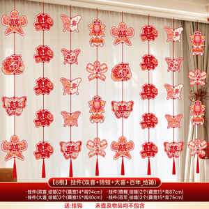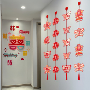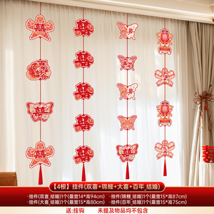 结婚喜字贴纸挂饰新婚房卧室窗户窗帘布置装饰婚礼长条囍字小挂件