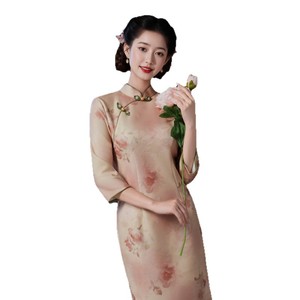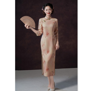 复古中国风长款七分袖旗袍2025秋冬新款改良中式年轻款旗袍连衣裙