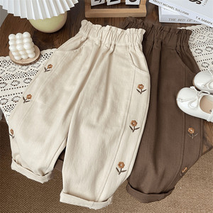 女童宝宝新款可爱风秋天百搭儿童休闲长裤花朵刺绣哈伦裤洋气裤子