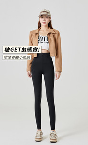 秋冬加绒打底裤高腰提臀紧身巴比裤拉链收腹粉绒排扣小脚鲨鱼裤女