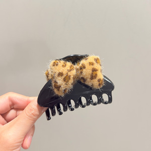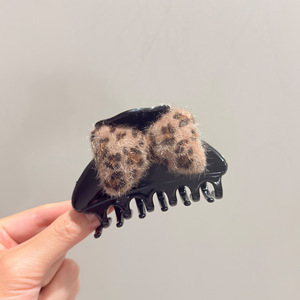韩国东大门品质毛绒豹纹蝴蝶结抓夹洋气时尚气质盘发鲨鱼夹发饰女