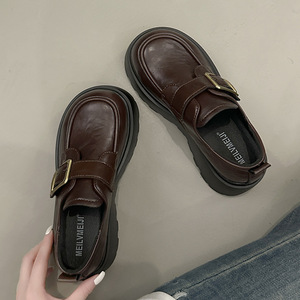 复古英伦风乐福单鞋女2025秋季新款厚底粗高跟小个子玛丽珍小皮鞋