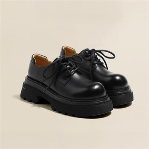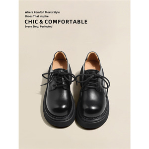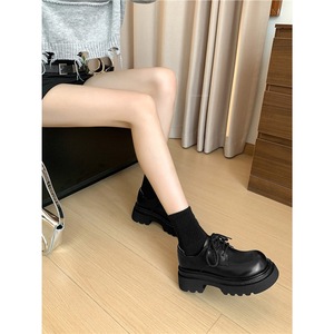 香港英伦风系带大头乐福鞋女2025秋季新款时尚松糕厚底圆头小皮鞋