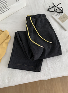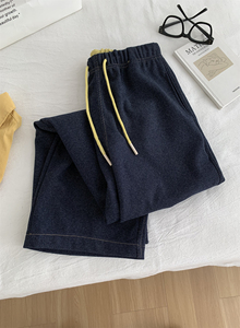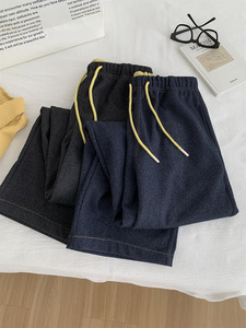 洋气复古斜纹牛仔色直筒休闲裤女秋冬加厚垂感显瘦窄版阔腿弯刀裤