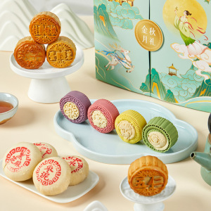 月饼礼盒装广式苏式五仁冰皮流心糕点奶黄蛋黄莲蓉中秋批发团购