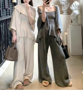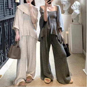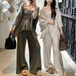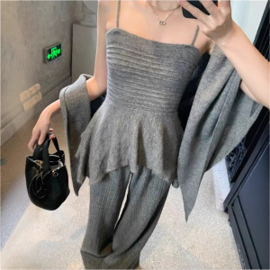 PH1002大爱美依缘2025新款洋气吊带修身上衣高腰阔腿裤搭配披肩潮