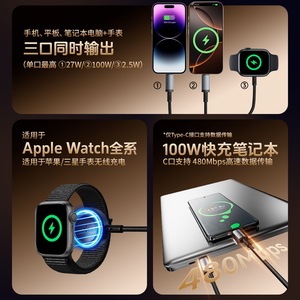 倍魔二拖三快充数据线PD100W磁吸无线充适用苹果手机笔记本iWatch