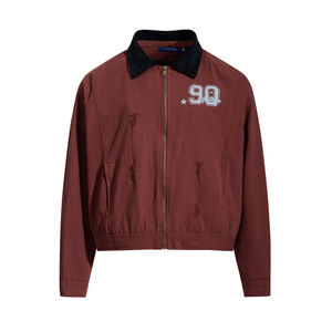 美式复古拼接字母印花翻领夹克男女秋冬新款潮流撞色情侣款外套