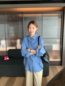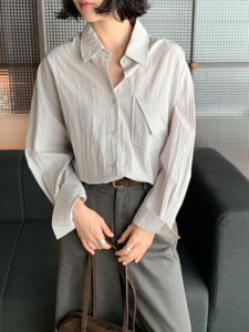 KITTIN-秋季韩版复古简约质感通勤天丝麻混纺翻领长袖衬衫女U8783