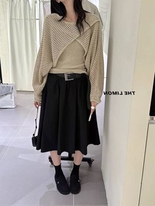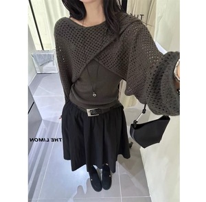 高级感镂空长袖针织披肩罩衫套装女秋季薄叠穿内搭吊带背心两件套