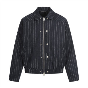 美式复古竖条纹宽松外套秋冬款潮牌男装双头拉链工装休闲翻领夹克