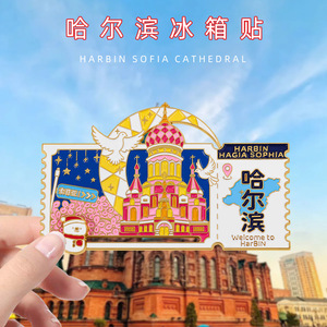 哈尔滨冰箱贴文创纪念品雪花可滑动邮票冰箱贴旅游伴手礼小礼物