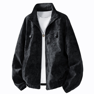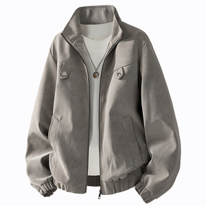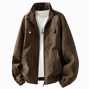 OLA美式复古做旧纹理立领仿麂皮面料男士宽松时尚防风保暖夹克