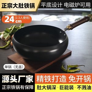 大肚制作古奶锅家用铁锅手工炒菜锅无涂层辅食平底不粘锅炒锅