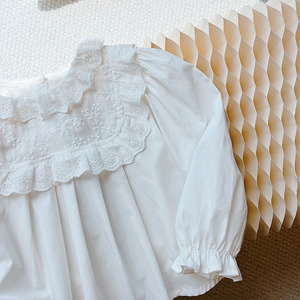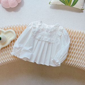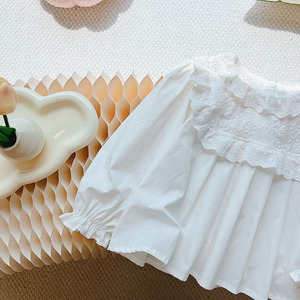 女童秋季新款纯棉长袖娃娃衫女宝时尚甜美衬衫衬衣2025外穿白色潮