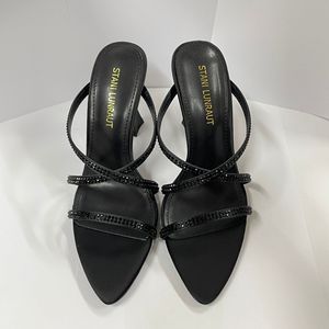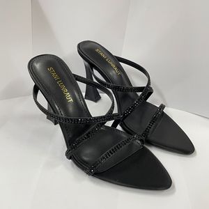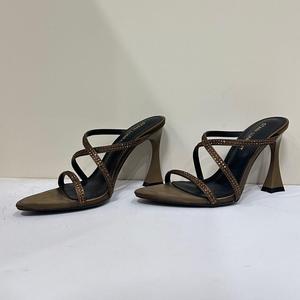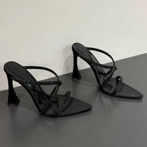 WO惠州市2025新款露趾欧美时髦显瘦交叉尖头细跟凉拖外穿气质优雅