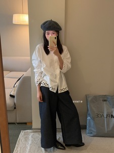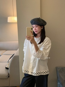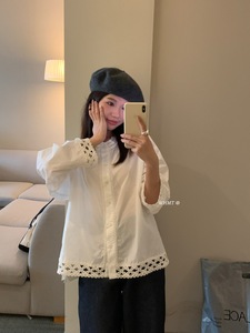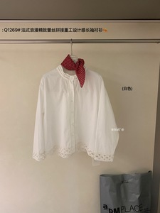 【WOW】法式浪漫精致蕾丝拼接重工设计感长袖衬衫(不配红色围脖)