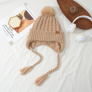 冬天帽子女大毛球贴标针织帽加厚抗风保暖帽可爱时尚麻花辫毛线帽