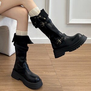 厚底棕色美拉德长筒高筒靴子女夏2025新款秋配裙子西部牛仔骑士靴