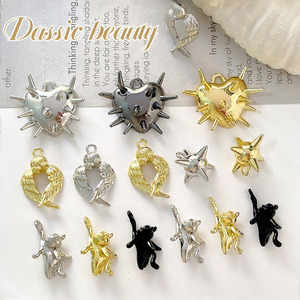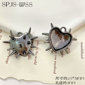小众哥特风棘刺爱心小猫天使钉球吊坠配件材料项链耳饰diy小配件