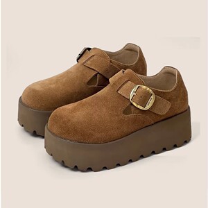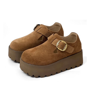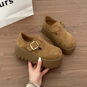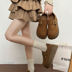 真皮复古勃肯鞋女2025秋新款一脚蹬松糕厚底小个子百搭单鞋乐福鞋