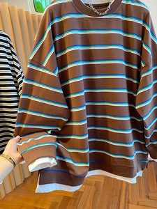 加肥加大码300斤秋季休闲显瘦宽松百搭日常韩版条纹假两件卫衣