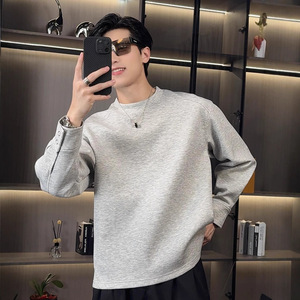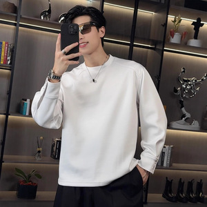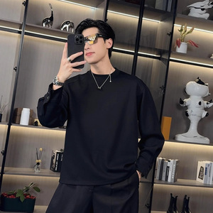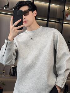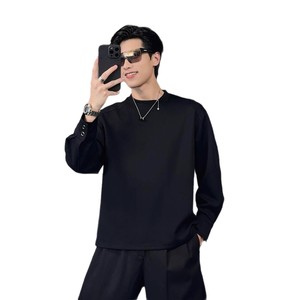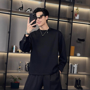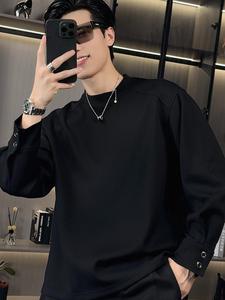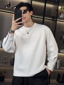 秋季新款韩版时尚休闲纯色品质情侣百搭简约高级潮流圆领长袖t恤