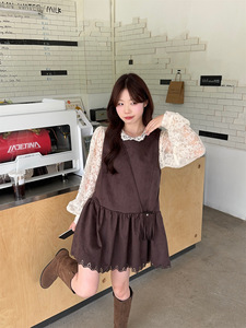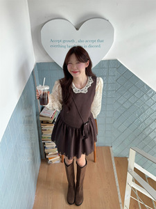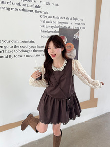 法式复古无袖背心连衣裙女秋季2025新款宽松叠穿小众蕾丝A字短裙