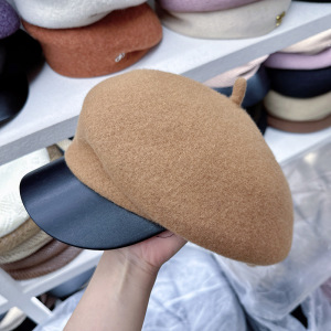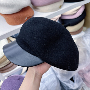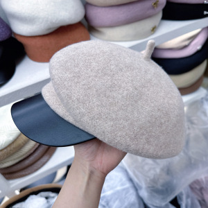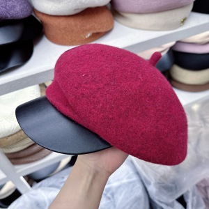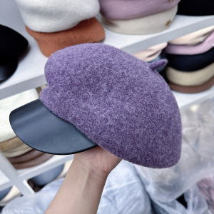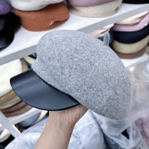 批发韩国2025年新款英伦复古文艺羊毛报童帽女百搭皮檐鸭舌贝雷帽
