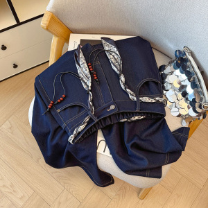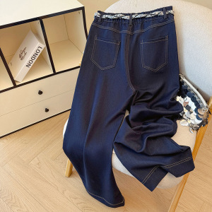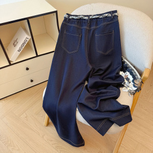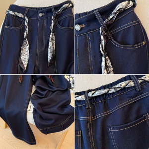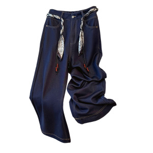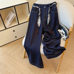 秋季新款丝巾腰带阔腿牛仔裤女高腰休闲宽松百搭休闲直筒裤A6941