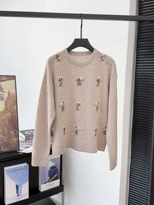 25秋冬新品立体刺绣花朵镂空羊毛复古减龄通勤针织长袖毛衣上衣女