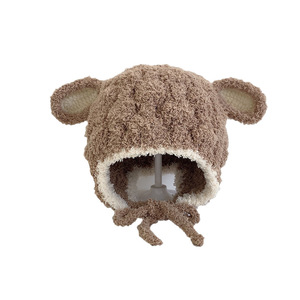 婴儿帽子冬季小羊耳朵头套可爱男女宝宝保暖防风室外羊羔毛护耳帽