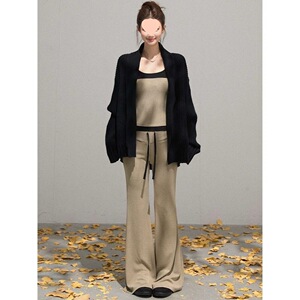 韩系慵懒风套装女纯色外套吊带2025超火穿搭一整套新款垂感休闲裤