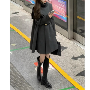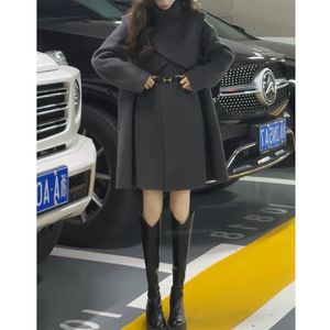 2025小巴黎冬季新款可拆卸斗篷毛呢大衣中长款修身显瘦时髦两件套
