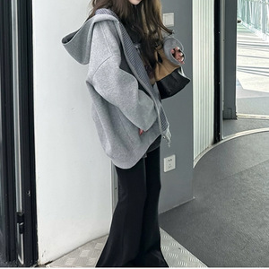【Miu格时代】miumi*yb双层复合连帽卫衣女秋格纹外套 休闲风氛围