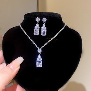 镶钻轻奢宫廷风首饰套装银针水滴流苏耳钉小众设计感吊坠项链批发