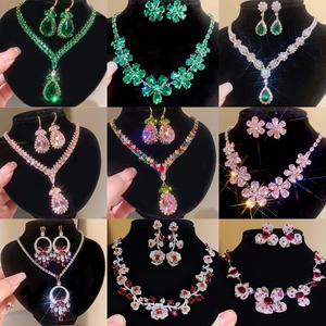 12#彩色锆石水滴耳钩项链(两件套)