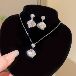 1#套装-锆石贝壳吊坠项链耳钉