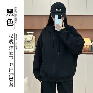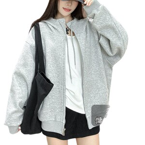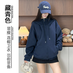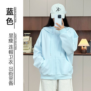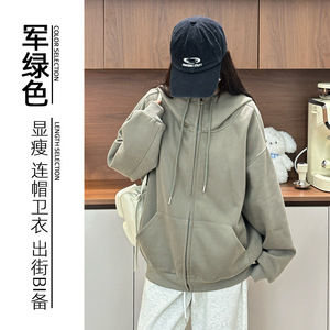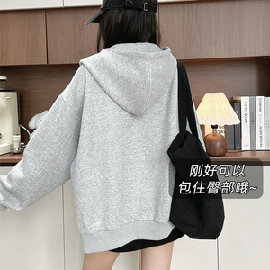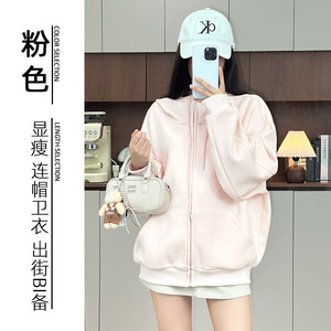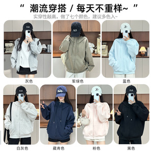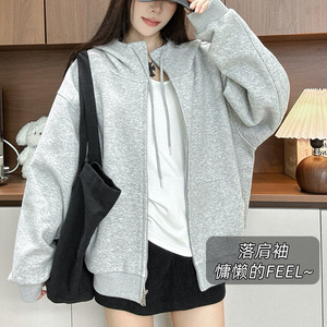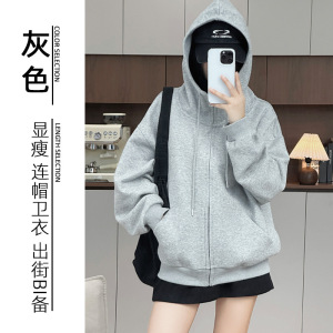 2025新款浅灰春秋季外套女式连帽开衫拉链卫衣百搭显瘦设计感卫衣