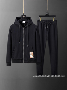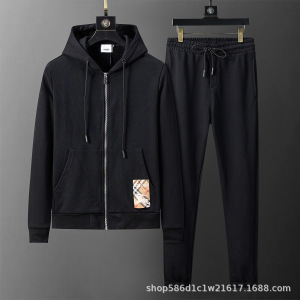 跨境外贸高品质经典款满印字母logo运动时尚套装休闲拉链夹克卫衣