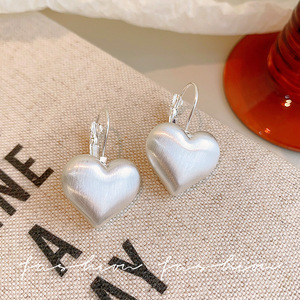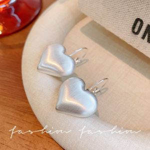 欧美小众设计拉丝金属爱心耳环冷淡风小众潮人博主同款气质耳扣女
