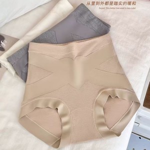 超柔莫代尔磨毛高腰收腹三角内裤女士大码胖mm德绒交叉收腹塑形裤
