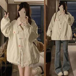 多巴胺甜美小众碎花翻领夹克女春秋季新款设计感宽松潮牌外套